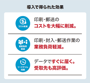 一番のメリットは、コストカット効果。郵便料金の値上げ以降、増えていた郵送費を約4割削減できました。もちろん、WEBに移行する取引先が増えればさらに抑えられますし、出力費や紙代を含めると、それ以上の費用を削減できたと見込んでいます。