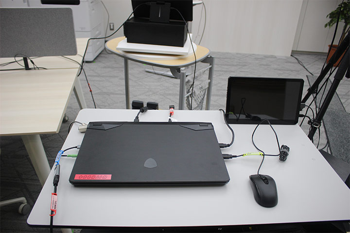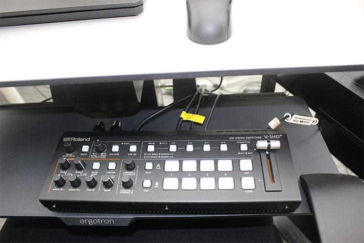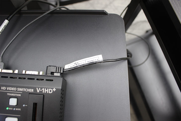 それに伴い、さまざまな配信機材を導入し、試行錯誤を重ねました。カメラ、マイク、スイッチング機材、ディスプレイ等々、たくさんの機材を接続し、お客さまに快適で、効果的な環境を整備するごとに、それらを接続するケーブル類が多くなってきました。そのため、接続機器の変更時や、機材移動時に機器を再接続する際、『どのケーブルを、どの機器に接続すればよいか』の判断に、時間を要する場面が増加し、課題になっていました。