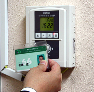「職員が入れ替わるたびに、1枚数百円のICカードを新しく作り替えていたら、その費用だけで年間数万円になってしまいます。そこで、名前と写真を印刷したシールをICカードに貼り、それを取り替えることでカードを再利用する方法を採用しました」。