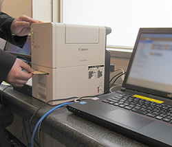 ただ、プリンターを設置する窓口は、事務スペースがとても狭く、キヤノンから提案を受けたコンパクトなカードプリンターでさえ、設置場所をつくるのは容易ではありませんでした。そこで、窓口の職員たちがプリンターの改良点をキヤノンに提案。そ