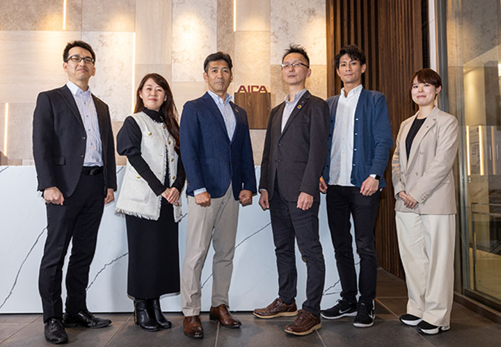 1936年、愛知時計電機の接着剤部門を引き継ぎ、愛知化学工業として創業。現在、建装建材事業と化成品事業の2本柱で幅広く事業を展開し、特に家具の表面材等に使用されるメラミン化粧板では国内トップシェアを誇るのがアイカ工業株式会社です。同社ではシステムの老朽化とサーバー、OSのサポート終了にともない、FAX受発注システムの刷新を検討。操作感を変えず、受注業務のクオリティを保ちながら、新システムにスムーズに移行することに成功しました。今回、プロジェクトメンバーである情報システム部の沖永氏、福井氏、生田氏、小倉氏、業務統括部の大浦氏、川口氏にお集まりいただき、詳しい導入の背景や選定理由、導入後の効果などについて伺いました。