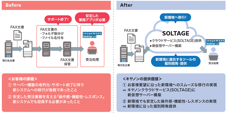 FAX受発注システムが老朽化し、サーバーとOSのサポートも終了