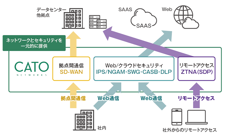 - ネットワークとセキュリティを統合し、働く場所や利用するデバイスに問わず、安全で統一された高度なセキュリティポリシーの適用を実現。