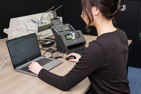 CaptureBrainの導入によって、同社は英数字だけでなくカナ文字まで、口座振替依頼書に記入されているすべての文字を自動入力できる環境を実現しました。「専用のスキャナを使ってOCR処理を行うのですが、数秒程度で高速に読み取ってくれます。カナ文字対応、ベリファイのしやすさ、そして高速処理という特長によって、依頼書管理システムへの入力業務は大幅に効率化されています。以前は6名の人員で11時から16時ごろまでかかっていた入力業務が、現在は早ければ午前中に完了しています」と十六電算デジタルサービスの河合 里奈氏は言います。