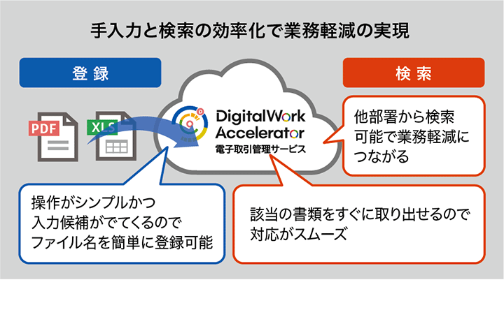 電子帳簿保存法対応として、請求書の保管からDigitalWork Accelerator電子取引管理サービスでの運用をスタートした同社。