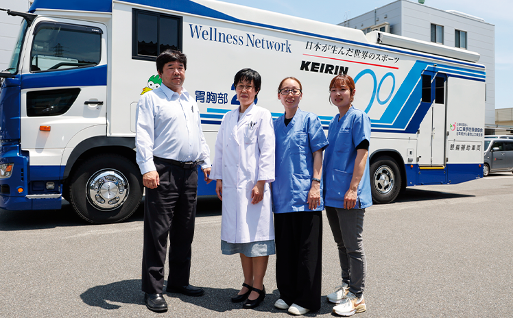 健康の保持増進や生活環境の保全、公衆衛生の向上を図るため、がんをはじめとした各種健康診断、生活習慣に関する保健指導、生活環境の調査・分析、食品・飲料水の検査などを行っている公益財団法人。新生児から齢者まで、あらゆる人がそれぞれのライフステージに応じて健康で、安心して暮らせる社会の実現をめざして力を尽くしています。同協会では、中核事業である巡回健診の現場で起きる、検査項目の実施漏れや受診票の記入漏れといった人的ミスが長年の課題となっていました。そこでDXによる業務効率化と医療サービスの品質向上を図るため、キヤノンITSメディカル(以下、キヤノンIM)の「ハンディ健診」を活用し、確かな成果を挙げています。保健部の金子氏、長岡氏、松田氏、安全管理室の宮崎氏に導入の背景や選定理由、運用の効果などについて詳しく伺いました。