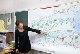「例えば、社会科資料集にある挿絵などを拡大して黒板に貼り、『この絵を見てどんなことがわかるかな?』と質問することから授業をはじめると、子供たちの興味や好奇心を掻き立てるのに非常に有効です。」と語るのは、同校の石渡知世教諭。