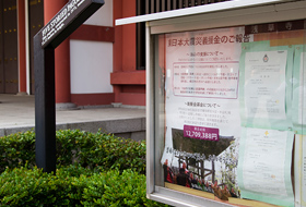 「現在、境内の掲示板に貼ってあります『東日本大震災義援金のご報告』のポスターはimagePROGRAFで印刷したものです。浅草寺では震災の直後から『大絵馬寺宝展と庭園拝観』として、通常では行っていない絵馬堂を、期間を設けて都度公開し、その入場料を、日本赤十字社などを通じて被災地に寄付する活動を行っているのですが、みなさまからご協力いただいた義援金の金額などを告知するためにポスターを作成しています。ご報告する金額は逐次変わっていきますので、数値を書きかえたものを定期的に出力し、貼り直すようにしています」