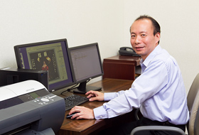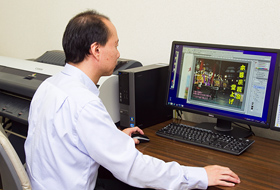浅草寺が、業務の効率化を目的に「imagePROGRAF」を導入したのは、5年ほど前のこと。寺務所施設内の一室に設置された本体は、構内のネットワークに接続されており、主に、古川さまをはじめとする数名の担当者が利用しているそうだ。