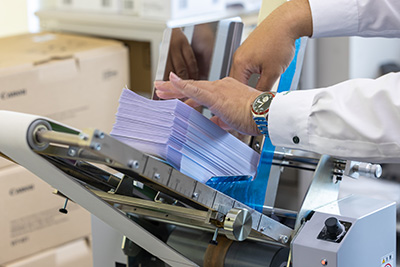 各メーカーの機種を比較検討したうえで、キヤノンのimagePRESS C910封筒フィーダー付きモデルに決めた理由は、我々が望む高品質な印刷を実現できるプリンターだったからです。封筒印刷では貼り合わせ部分の品質を安定させることが難しいのですが、imagePRESS C910は封筒の貼り合わせが目立たず、仕上がりがもっともきれいなプリンターでした。