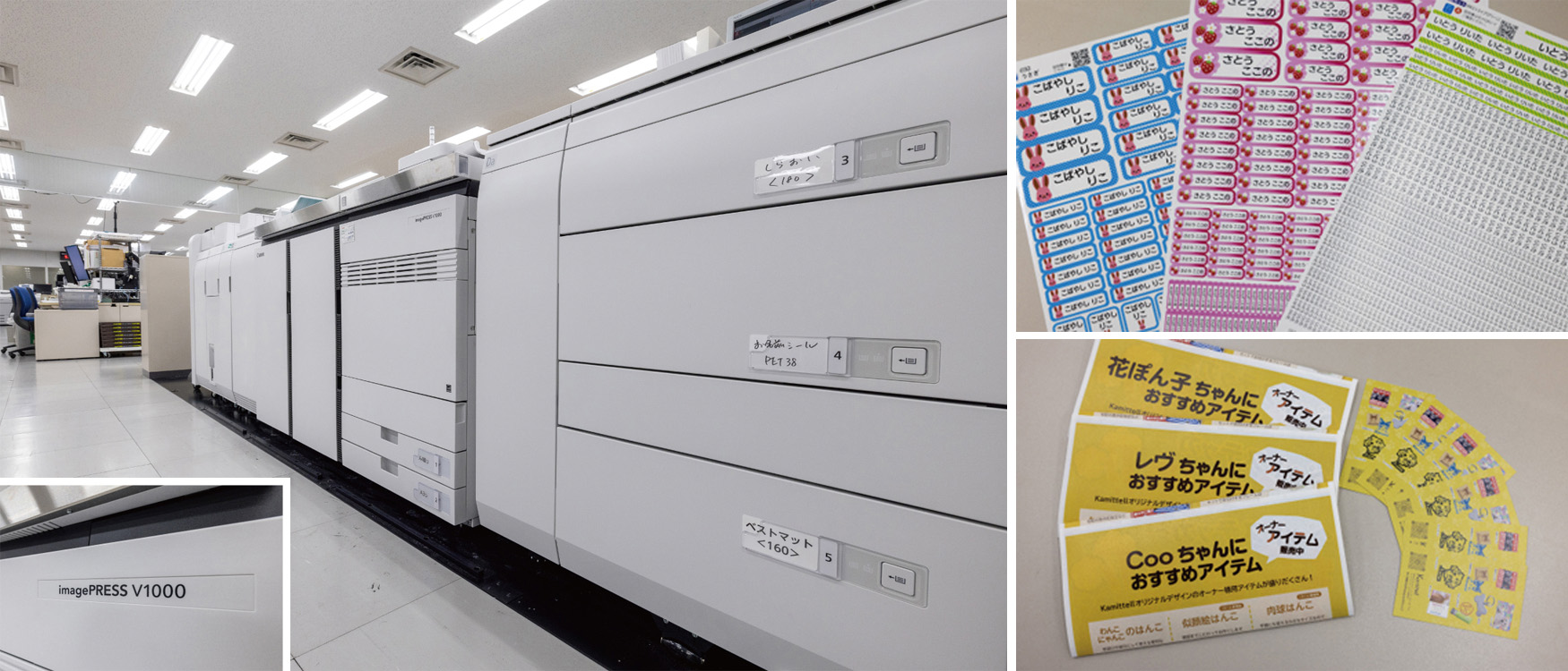 いま弊社の経営陣が注目しているのは、大ロットの情報印刷から、小ロット多品種に対応した「生活印刷」へのシフトです。情報印刷はデジタル化によりタブレットやスマホに置き換えが可能ですが、暮らしに身近な生活印刷の需要は、今後も拡大していく可能性が高いでしょう。その一例が、弊社がECで扱うパッケージやお名前シール、名刺・封筒、ポストカード類などの商品群です。従来の情報印刷のみならず、生活に密着した印刷物の世界にさらなる成長への商機を見出したい。小ロットから大ロットまでバリアブルに対応し、高品位で安定的な製造を可能にしてくれるimagePRESS V1000や、キヤノンの製品展開に期待しています。