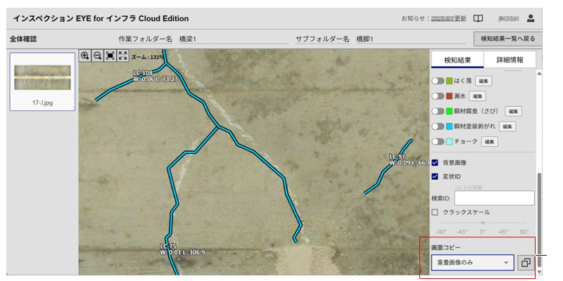 - [重畳画像のみ] : 変状検知結果をコピーします。