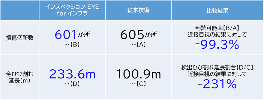 平成30年度国土交通省技術公募の検証の結果、ひび割れ検知は近接目視と同等以上の性能と評価