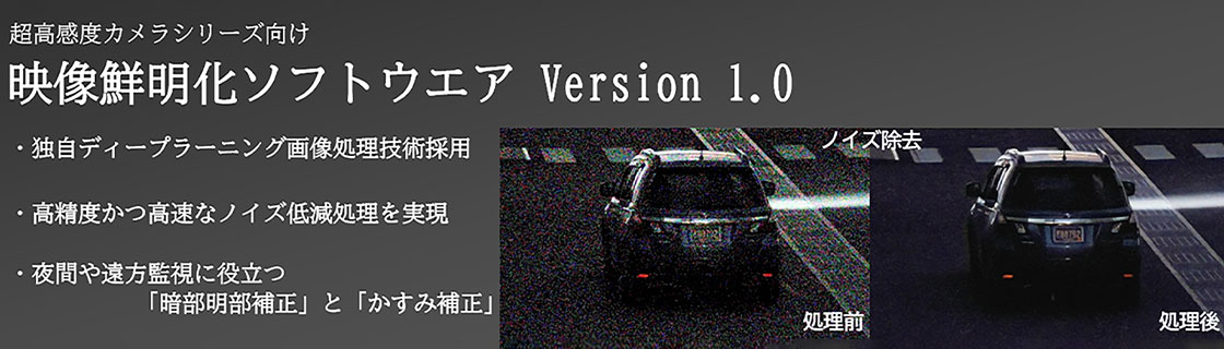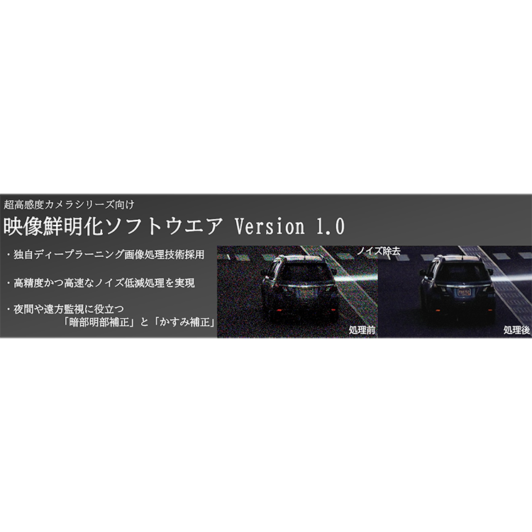 キヤノン超高感度カメラシリーズと組み合わせ、AIを活用したノイズ低減処理やかすみ補正などさらなる映像の鮮明化を可能にするソフトウエア。