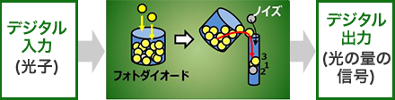 ![]() ノイズの影響により光子1個の入射を正確に検出できず精度が低下する場合がある |