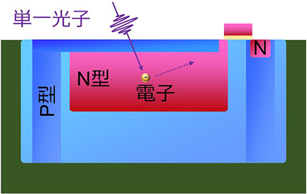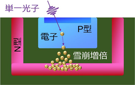 ![]() 光子1個の入射でも電荷の雪崩増倍により正確に検出できる |