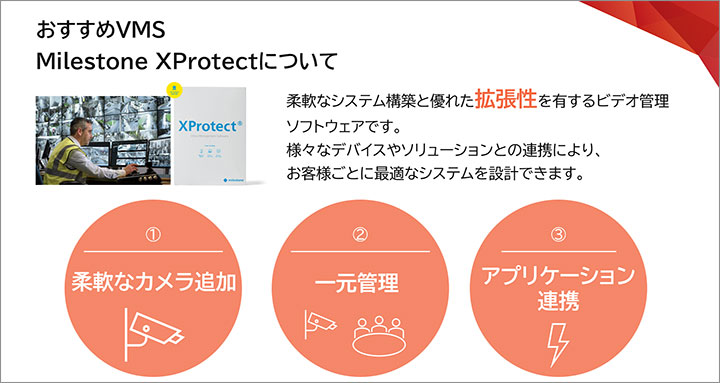 VMSについて特徴やおすすめVMSのMilestone XProtectの機能詳細、利用用途をご紹介しています。
