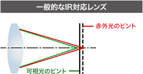 赤外光と可視光が混合する際にフォーカスずれが起こりやすいという赤外照明特有の課題を解決するため、スーパーUDレンズを採用。フォーカスずれを極限まで抑制し、鮮明な映像を実現します。