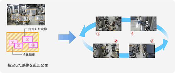 超広角112°のレンズが映し出す映像内の任意エリアだけを切り出しPTZモデルの映像のように配信。また、切り出した映像をプリセット巡回させることができるなど、広いエリアを少ないカメラ台数でモニタリングできます。