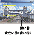 黄色い枠 | 制御権を取得したときに、黄色い枠表示に変わり、現在のカメラの撮影している領域を示すと同時に、黄色い枠内をドラッグしてパン/チルト操作を行ったり、枠上をドラッグしてズーム操作を行うことができます。 |
