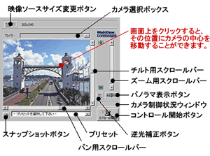 カメラをコントロールするためには、まず「コントロール開始ボタン」をクリックして、制御権を取得します。制御権を取得すると、カメラ制御状況ウィンドウが緑色(
