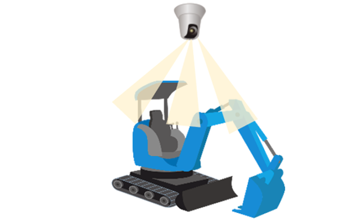 外観自動記録サービスは、製造業において人手作業となっている完成品の撮影と記録を自動化するサービスです。以下は重機をイメージしたサービスの概要図です。