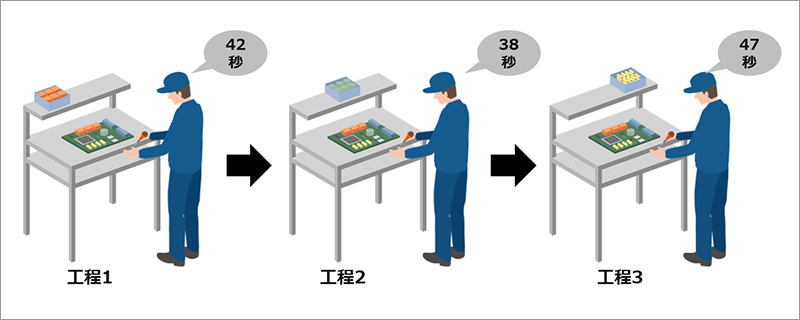 人手作業の平準化やボトルネック分析などを行うには、人の作業時間をストップウォッチなどで計測しないといけません。しかし、各現場の作業時間を計測するのは、非常に労力を要します。