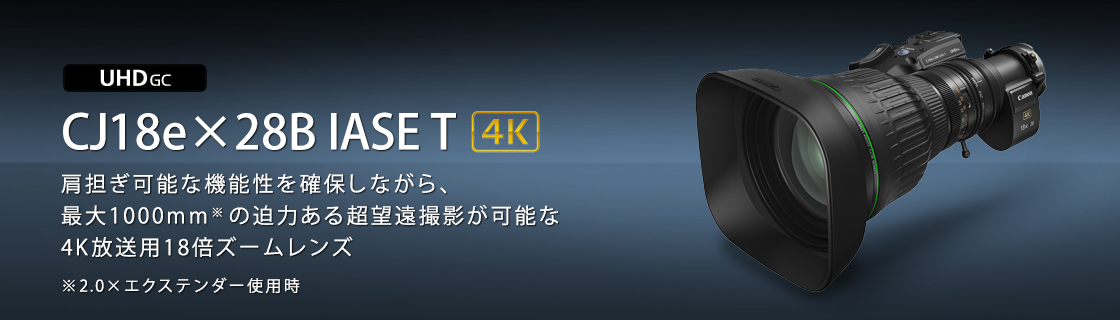 CJ18e×28B IASE T 4K 肩担ぎ可能な機動性を確保しながら、最大1000mm※の迫力ある超望遠撮影が可能な4K放送用18倍ズームレンズ ※2.0×エクステンダー使用時