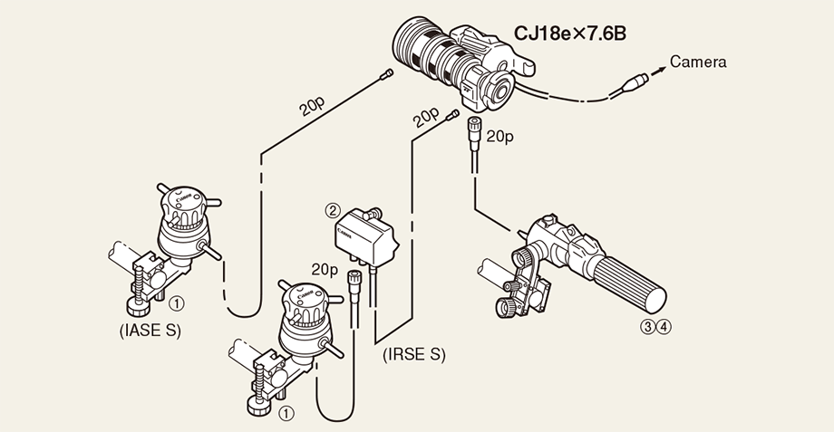 HD放送用レンズで標準的に使用されているキヤノン製ズーム/フォーカス操作系アクセサリーの使用が可能です。