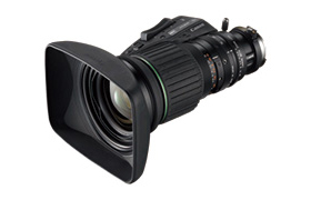 2/3型撮像素子を搭載した普及クラスのHDTVカメラに対応した、コストパフォーマンスの高いポータブルタイプの広角13倍ズームレンズです。移動レンズ群を正確に制御するインナーフォーカス方式の採用をはじめとするキヤノン独自の光学設計により、諸収差を良好に補正しているほか、ズーム全域において、画面周辺まで高い解像力とコントラストを実現しています。さらに、最新のHDTVカメラに対応する高い光学性能を維持しながら、全長211.7mm、質量1.59kgという小型・軽量化を実現しています。