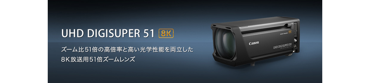 - 1.25型センサー搭載の8K放送用カメラ対応フィールドズームレンズとして、広角端15.5mmから望遠端790mmの焦点距離により、51倍ズームを達成。