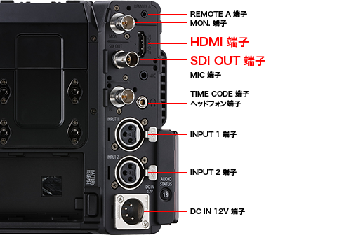 | SDI OUT | MON. | HDMI | VIDEO端子(専用ファインダー・LCDモニター出力) | EVF-V50(別売ファインダー) | ||||