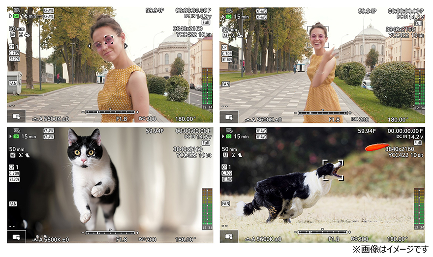 ディープラーニング技術により、被写体検出アルゴリズムがさらに進化。新たに人物の胴体と動物(犬、猫)の検出に対応しました。胴体検出ができることで、人物をAF追尾中に瞳や顔、頭部が隠れたときにも胴体を検出してトラッキングを継続できます