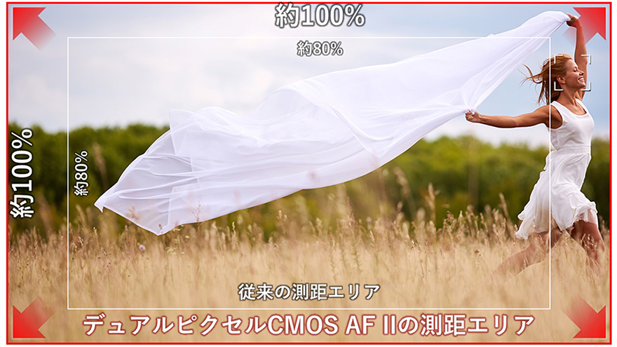 最大約100×約100%の画面全域測距に対応。画面の隅に被写体を配置する構図でも、高精度かつスピーディーにAFを実行。これまで以上に自由な構図で被写体を捕捉することが可能です。