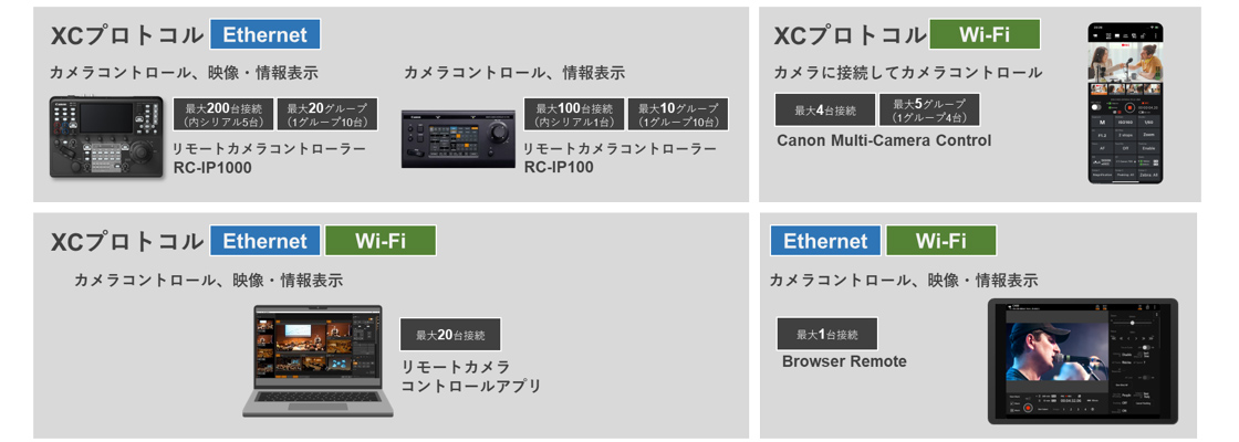 複数カメラを一括操作することができる多彩なリモートコントロールに対応。