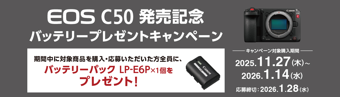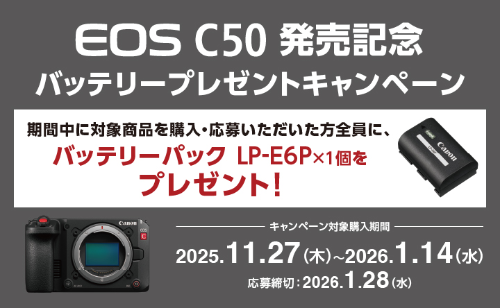 2025年11月14日 カメラEOS C50の発売が11月27日に決定いたしました。