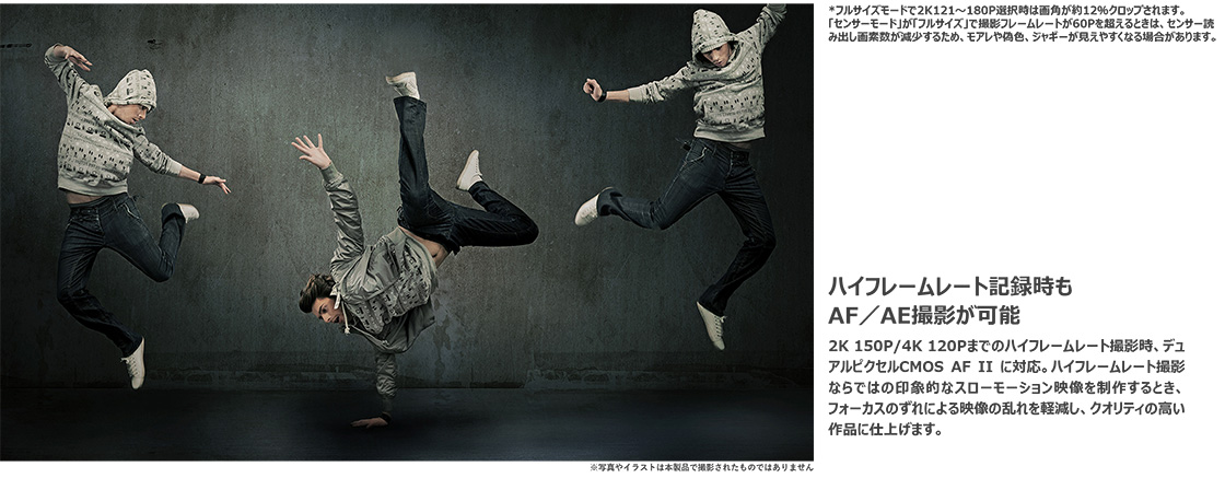 また2K 150P/4K 120Pまでのハイフレームレート記録時のAF/AE撮影が可能です。