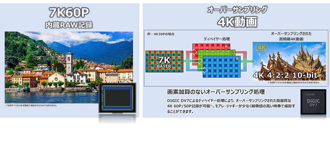 7K60P内蔵RAW記録とオーバーサンプリングによる高精細4K動画※