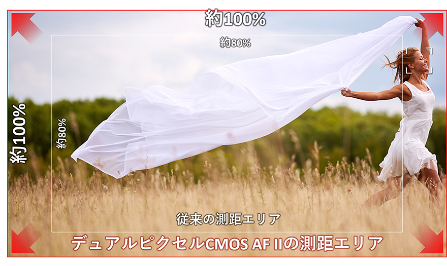 最大約100×約100%の画面全域測距に対応。画面の隅に被写体を配置する構図でも、高精度かつスピーディーにAFを実行。これまで以上に自由な構図で被写体を捕捉することが可能です。