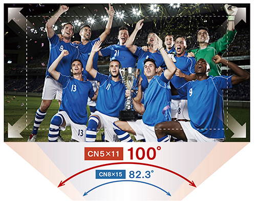 広角端で100°※2以上の超広角を実現