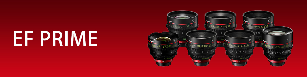 EF PRIMEは、14mmから135mmまで7本のラインアップを取り揃えたフルフレーム対応のEFマウント搭載単焦点レンズシリーズです。フルサイズ・ラージフォーマットセンサーカメラに対応し、浅い被写界深度でボケ味を活かした印象的な映像表現を実現します。