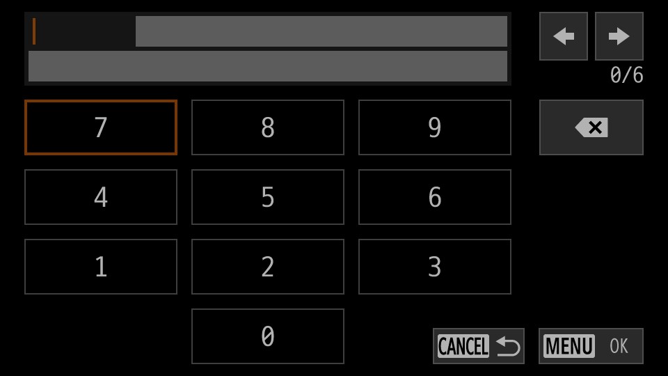 6桁の数字を入力し、<MENU>ボタンを押します。