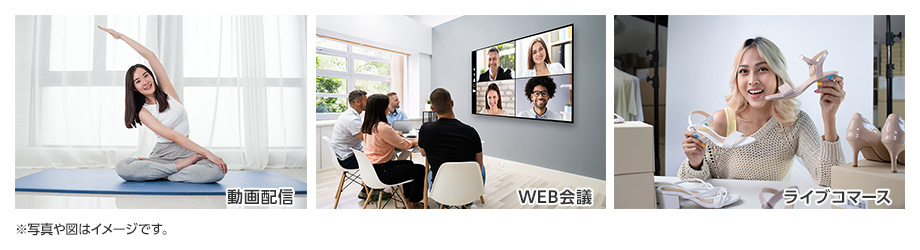 カメラとPCをUSBケーブルで接続するだけでWEBカメラとして認識可能。特別なソフトを導入することなく動画配信・WEB会議・ライブコマースなど、さまざまな配信用途に高画質なビデオカメラの映像を活用することが可能です。