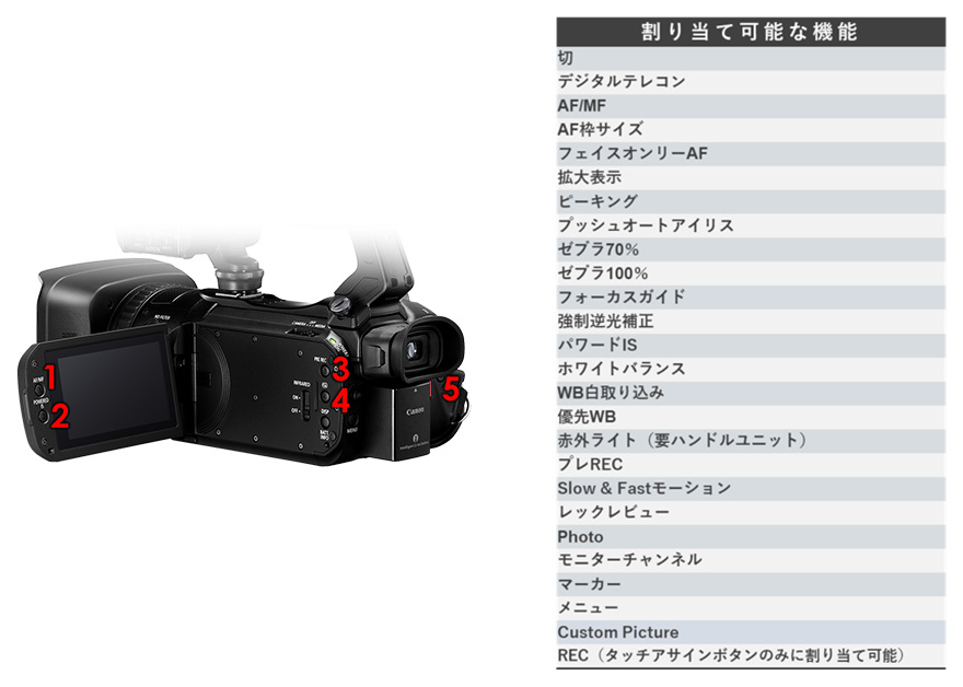 5個のアサインボタン