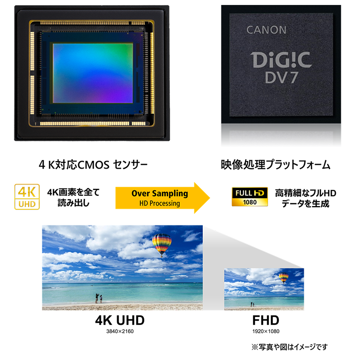 またOver SamplingHD Processing技術により、4Kセンサーから得られる情報を最大限活用した高精細なフルHD映像を生成します。