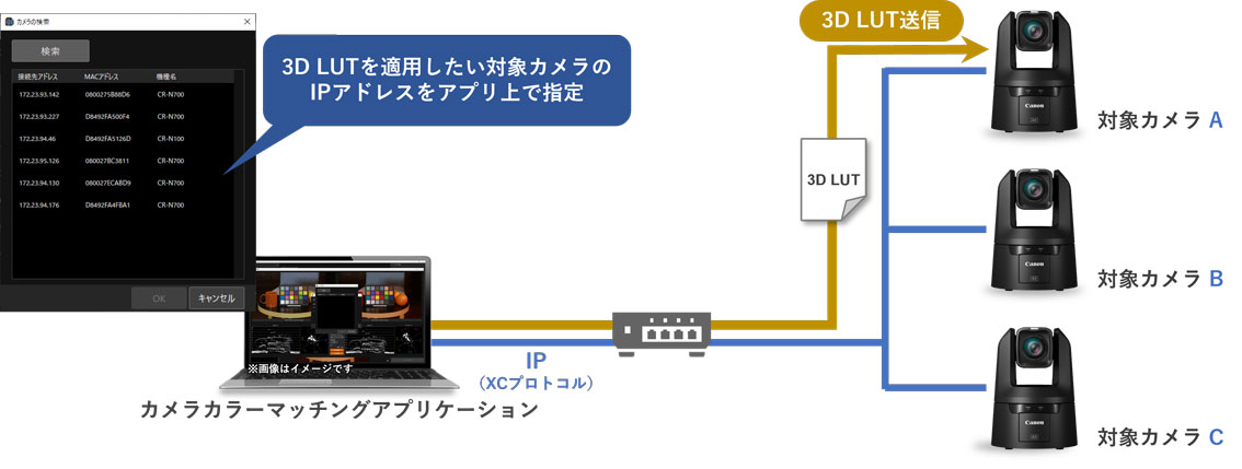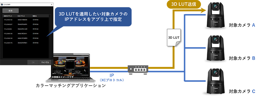 生成した3D LUTファイルをXCプロトコルによりカメラに送信します。
