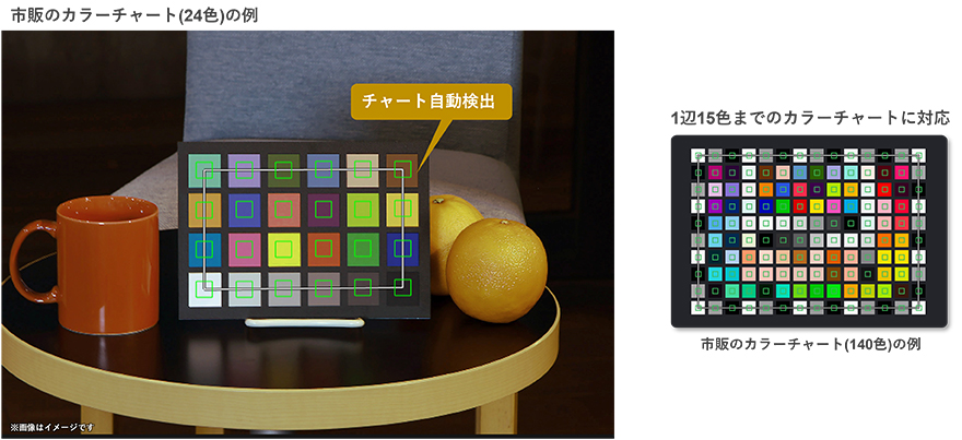 それぞれのカメラの画像から自動でカラーチャートを検出することができます。