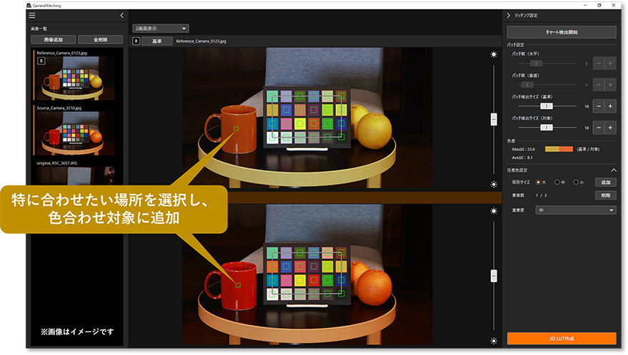 カメラの色味を基準カメラに合わせるためのPCアプリケーションです。