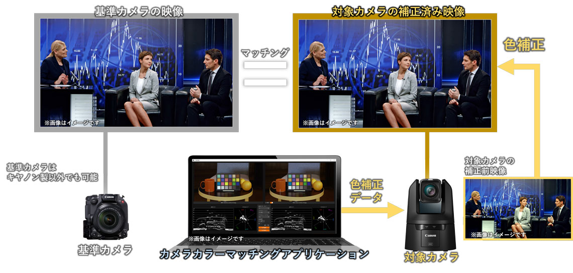 色合わせの基準となるカメラは、他社カメラでも使用可能なため、様々な撮影シーンに対応可能です。