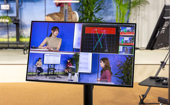 | Full | GPUを活用した高度な骨格検出を採用しており、頭部位置などの認識精度が高いのが特長です。 カメラ本体の自動追尾機能を用いて構図作成、自動追尾を行います。 カメラ本体自動追尾の制御+俯瞰カメラ映像を解析し、MCOシステムから遠隔制御